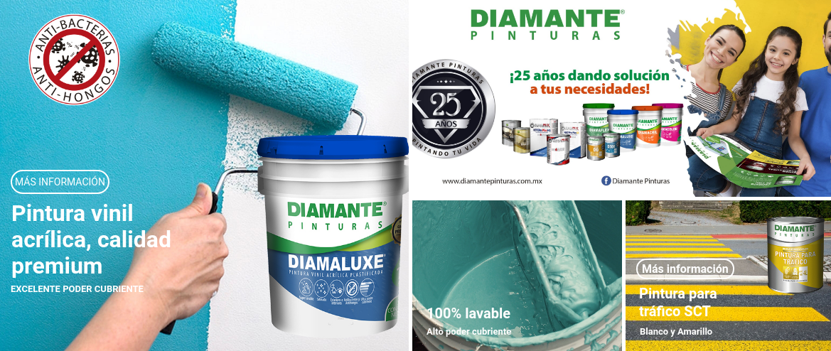 Pinturas Diamante, cuenta con una amplia gama de colores y tipos de pinturas, con mas de 25 años en el mercado, y productos de la mas alta calidad, los cuales podrá encontrar aquí con nosotros.